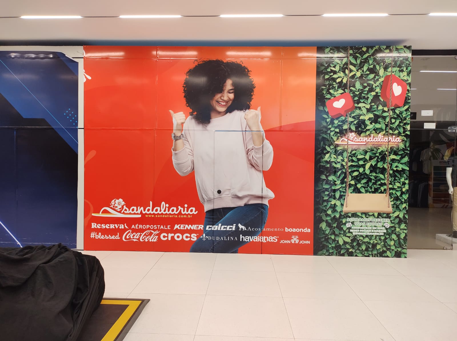 O tapume não apenas embelezou o espaço durante a obra, mas também funcionou como primeira vitrine da Sandaliaria no shopping. Ele atraiu olhares, gerou expectativa para a inauguração e reforçou a força da marca como uma experiência envolvente, mesmo antes da abertura das portas.